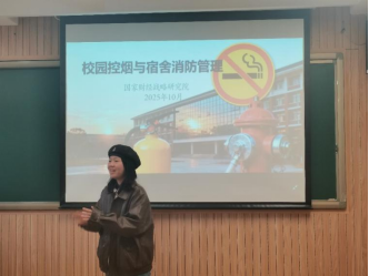 2025年10月28日,研究生会面向2025级研究生新生组织了“校园控烟与宿舍消防管理”主题宣讲会。研会主席何佳同学结合真实的数据和案例,从医学角度分析了烟草及电子烟对呼吸系统、心血管功能的危害。她重点讲解了在宿舍等人员密集场所吸烟带来的消防安全隐患,并指出“严禁在宿舍内吸烟、使用明火”是宿舍消防红线。她还向大家普及了实用消防知识,包括灭火器的操作方法、火灾初期逃生路线规划、违规电器识别标准等,强调了遵守宿舍管理规定的重要性。宣讲会后,研究生会组建了宣传小分队,深入高年级学长学姐的宿舍进行控烟宣传。